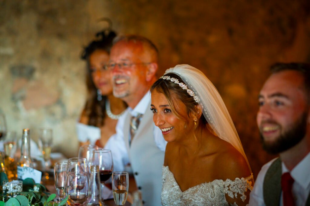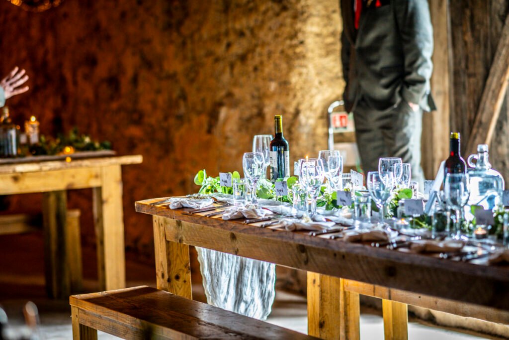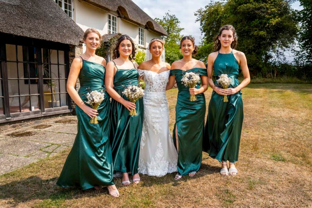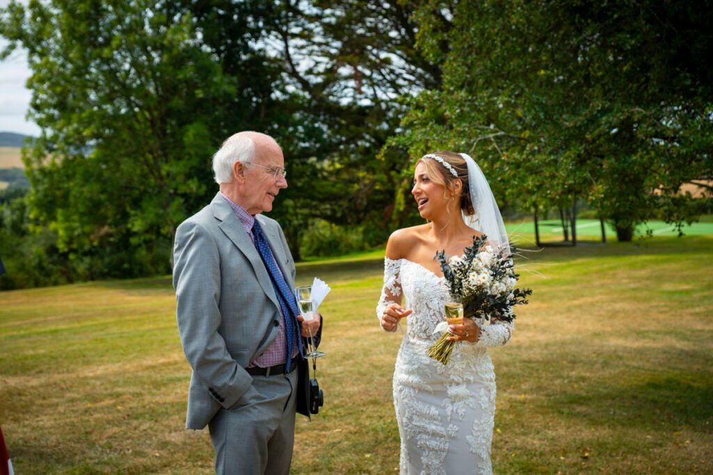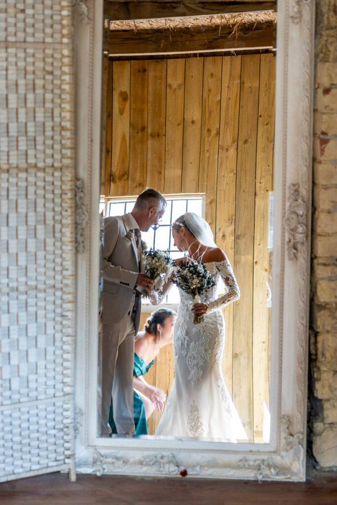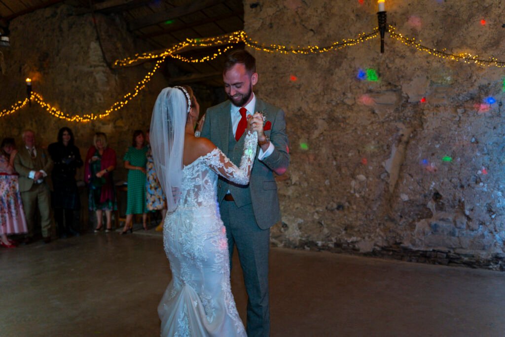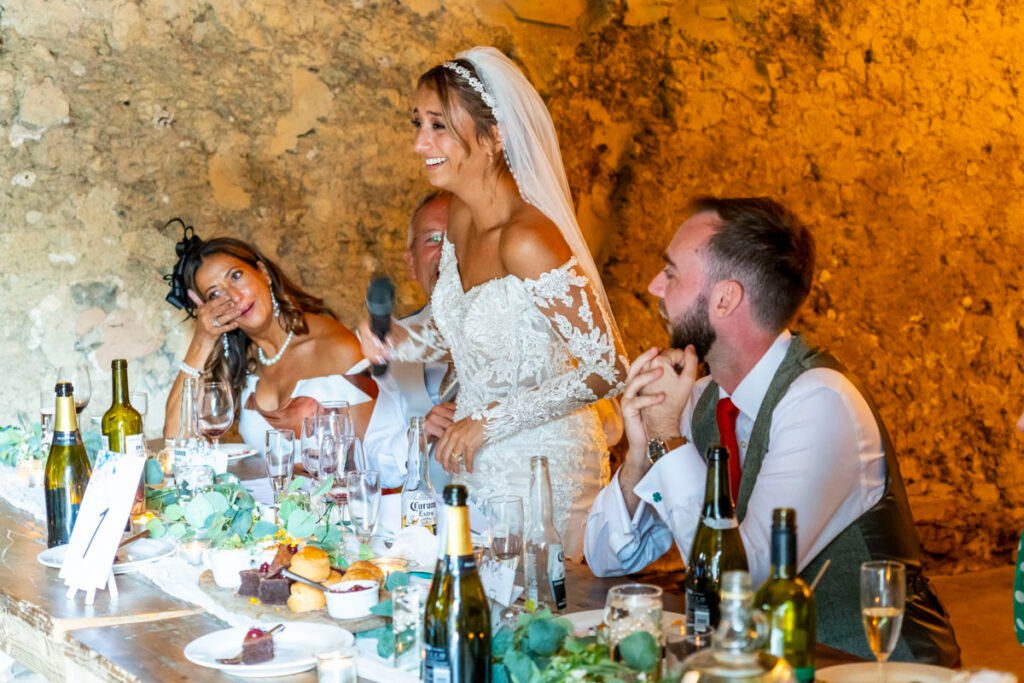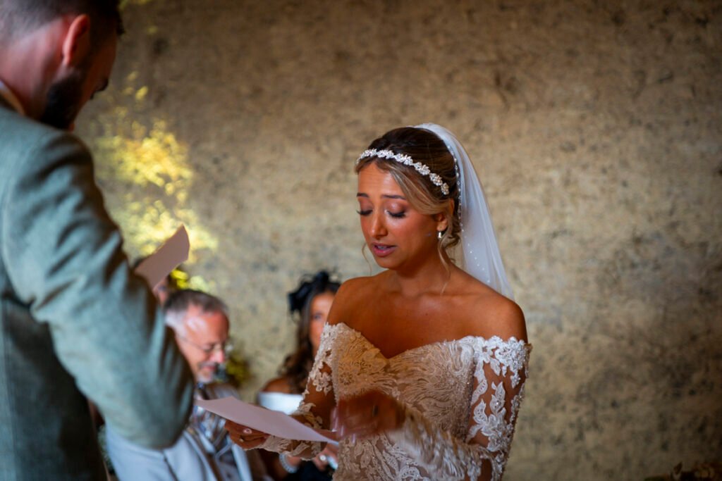 They were married in the Threshing Barn a gorgeous rustic venue. It was a lovely day so canapes and champagne were served in the beautiful grounds with far reaching views of Dartmoor