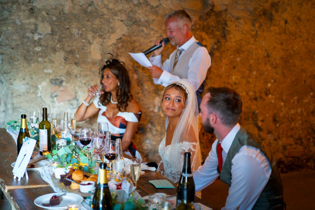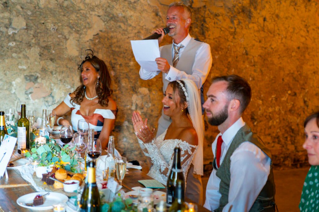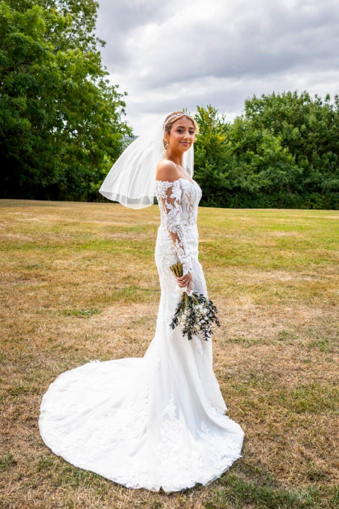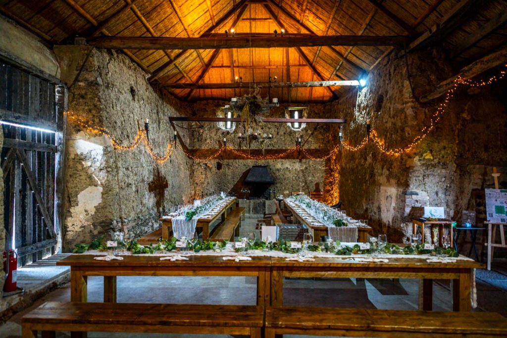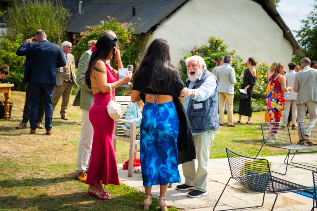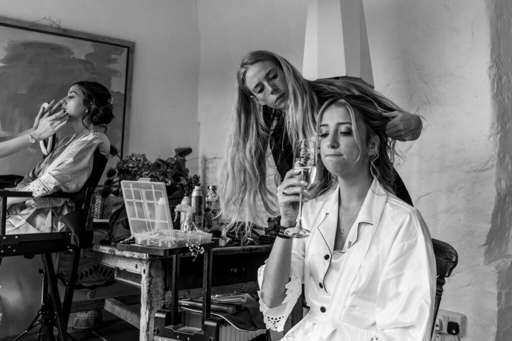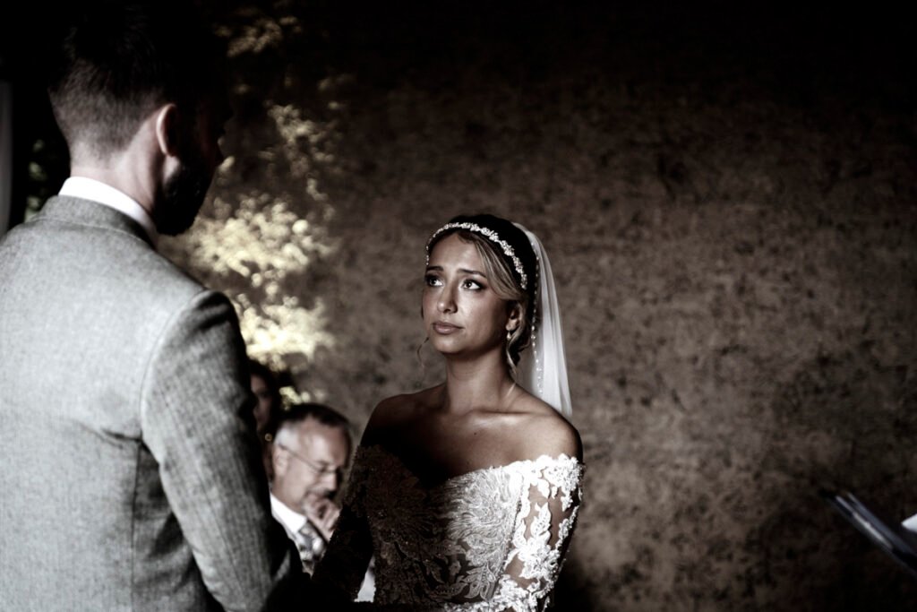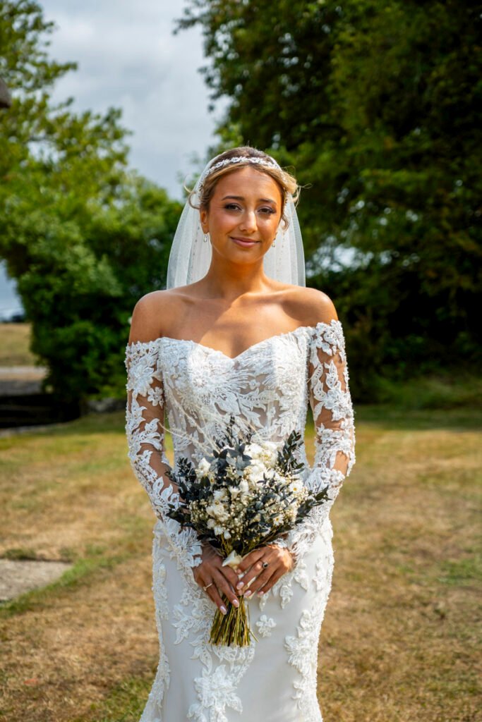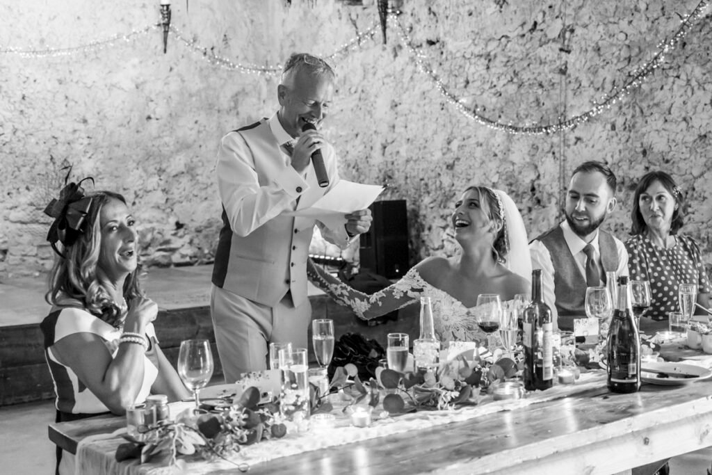 They were married in the Threshing Barn a gorgeous rustic venue. It was a lovely day so canapes and champagne were served in the beautiful grounds with far reaching views of Dartmoor