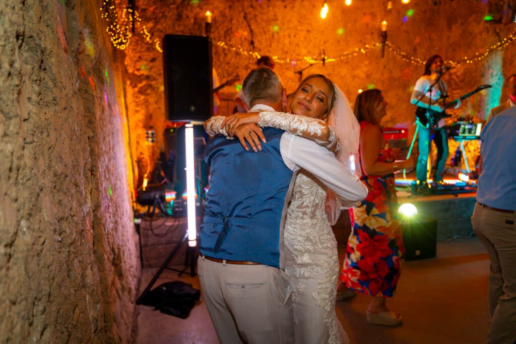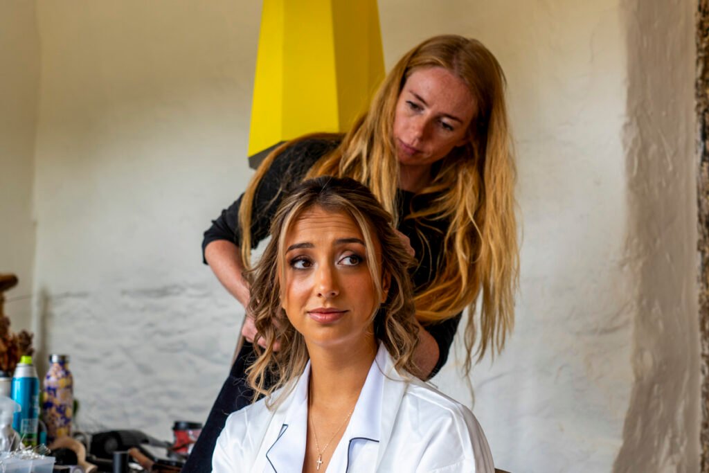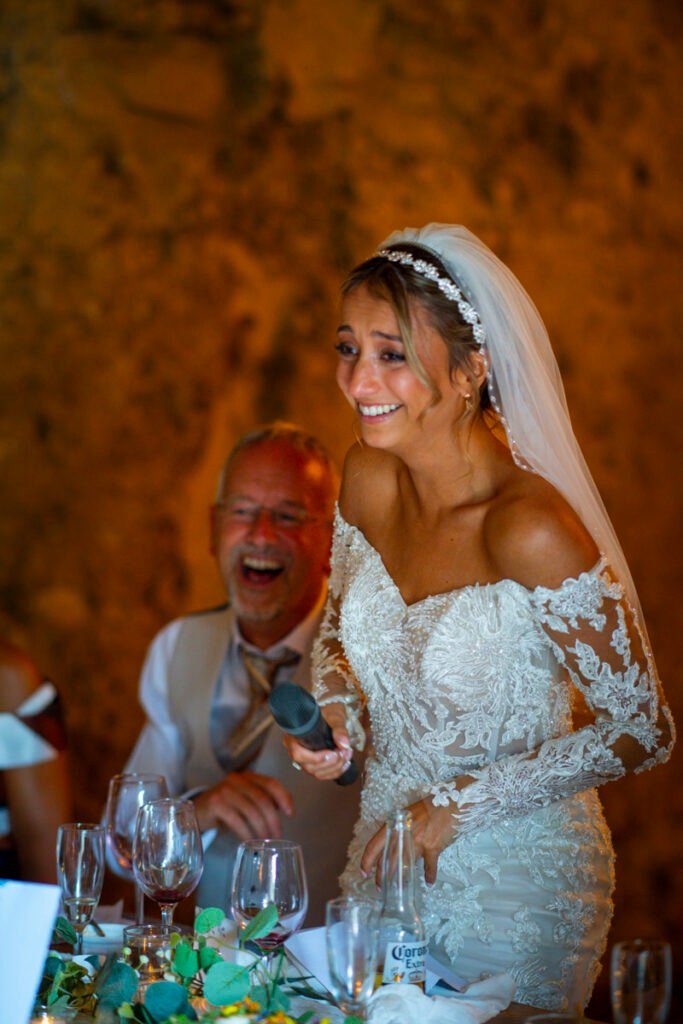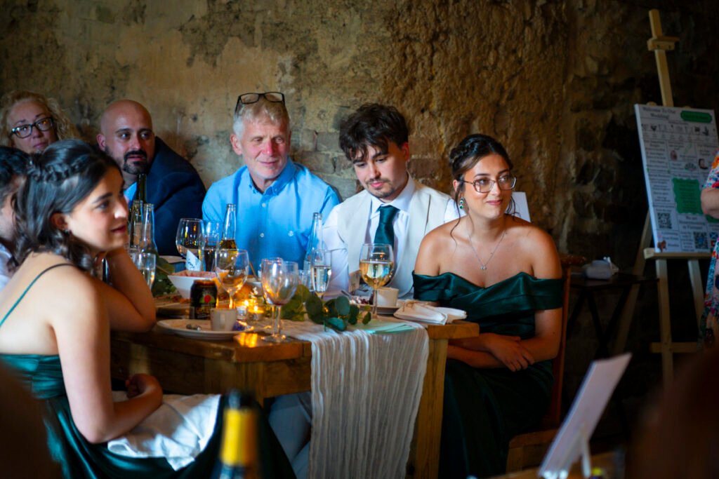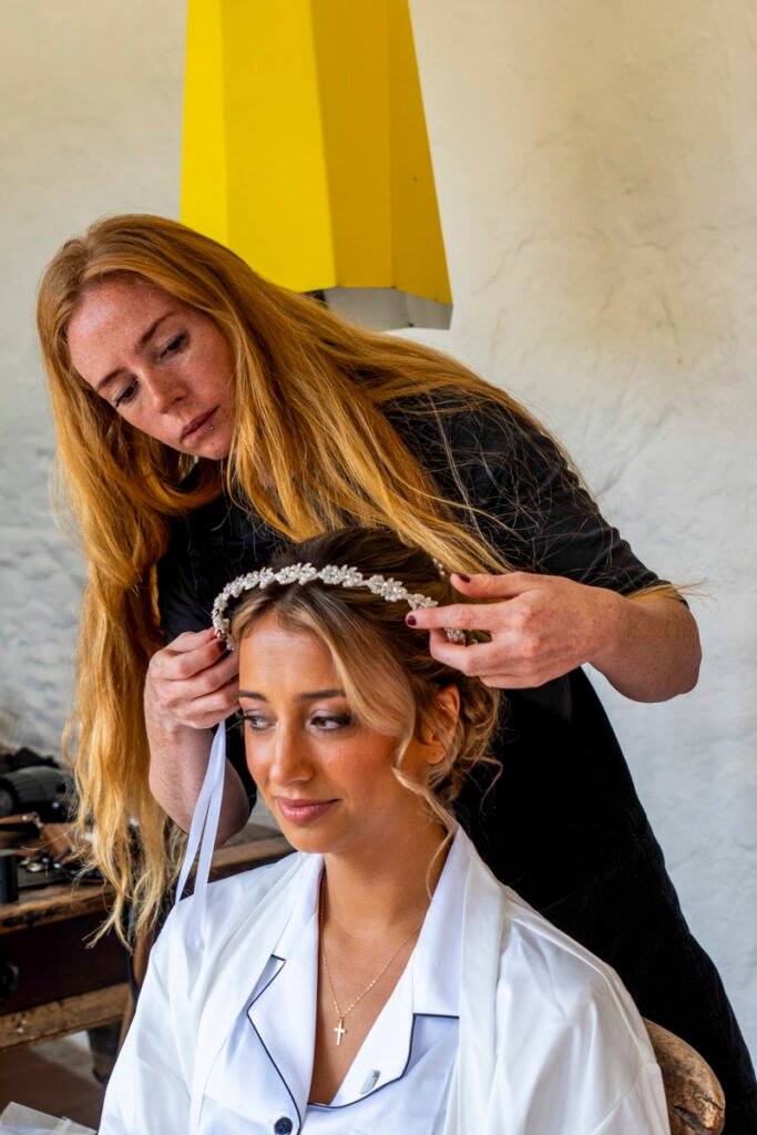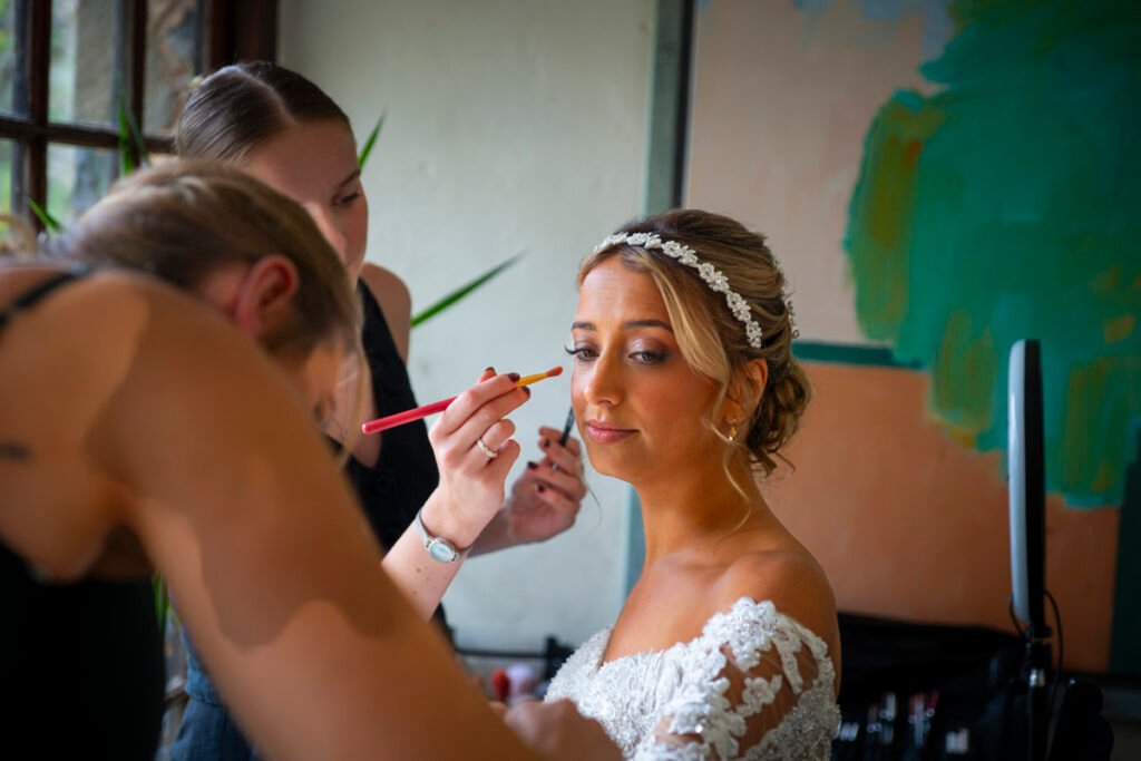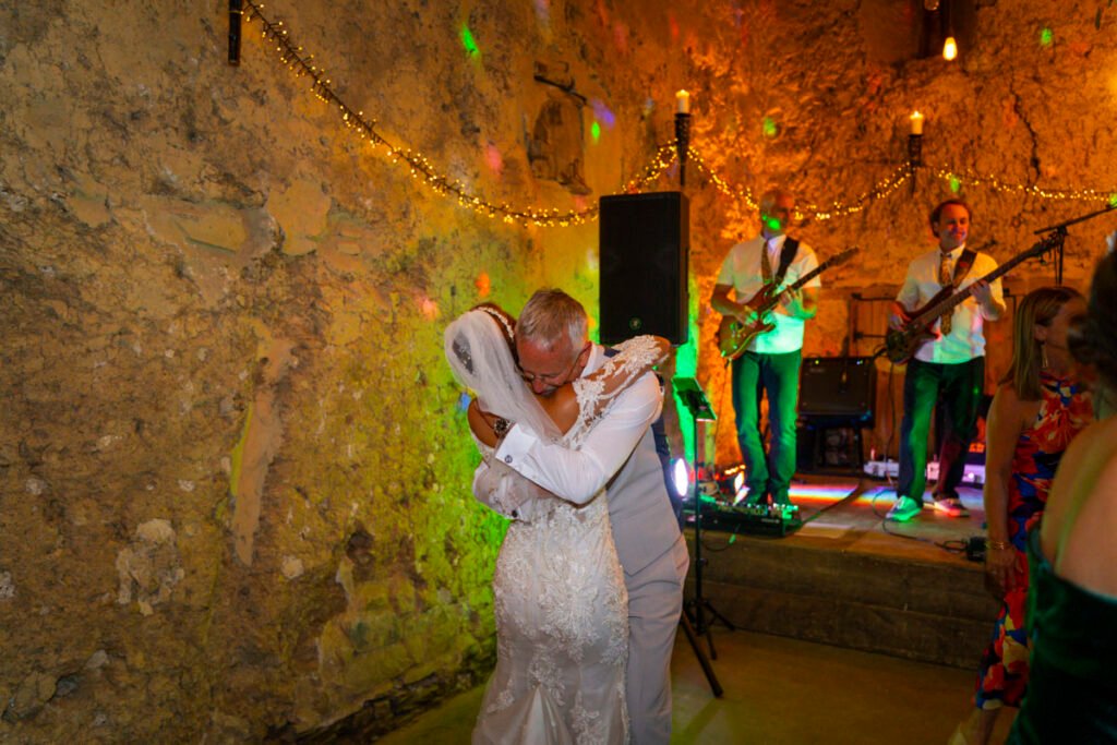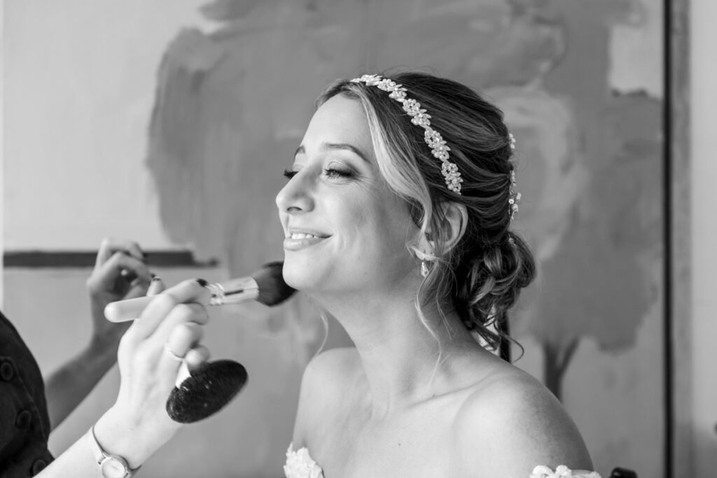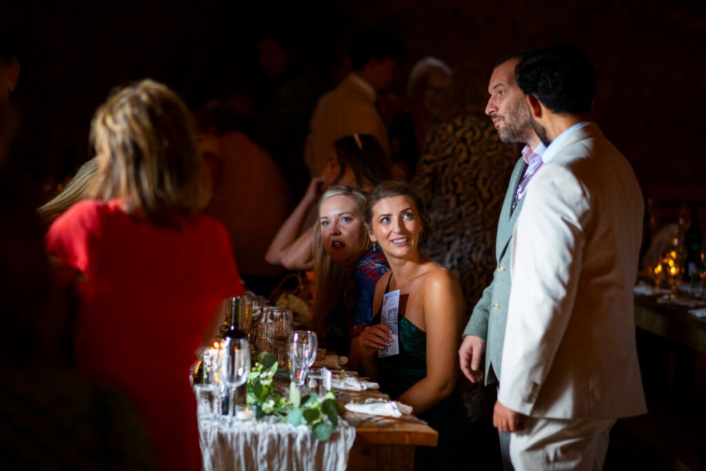 They were married in the Threshing Barn a gorgeous rustic venue. It was a lovely day so canapes and champagne were served in the beautiful grounds with far reaching views of Dartmoor